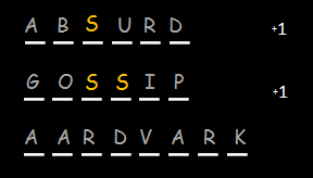 OK, so our strategy should be to find the column corresponding to the number of letters in the target word, and start calling down the letters from the top until we get a hit, right?