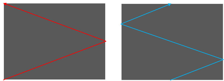 However, remember back to the time of when the television standards were being defined. This was in the 1930's, before the birth of digital computers. Systems were analog, and timing was everything. The reason that half lines were invented was so that distance of the vertical retrace was the same for both the odd and even frame!, and horizontal displacement carries on at the same rate. (In the images below, the length of the red and blue lines is the same. The vertical retrace takes the same amount of time).