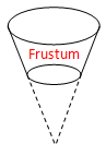 First, we need a way to work out the volume of ketchup in the cup in its varying configurations. If you look closely you will see the shape of the cup is that of a truncated cone. Mathematicians call this shape a Frustum. |