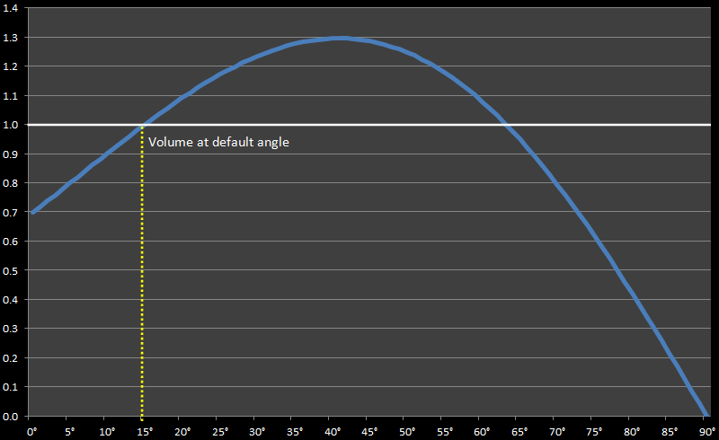 (Interestingly, the 15° default angle makes a huge difference to the default carrying capacity of the cup. As you can see from the above curve, if the cups were supplied with straight vertical sides, their capacity would be 30% lower!)