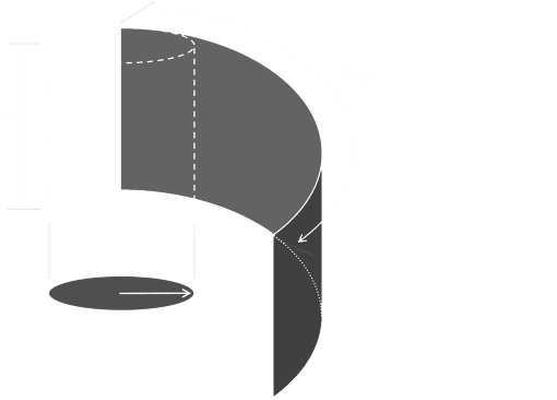 The surface area of a cylinder is area of two of the circular end caps, plus the rectangle that wraps around the edge forming the sides.