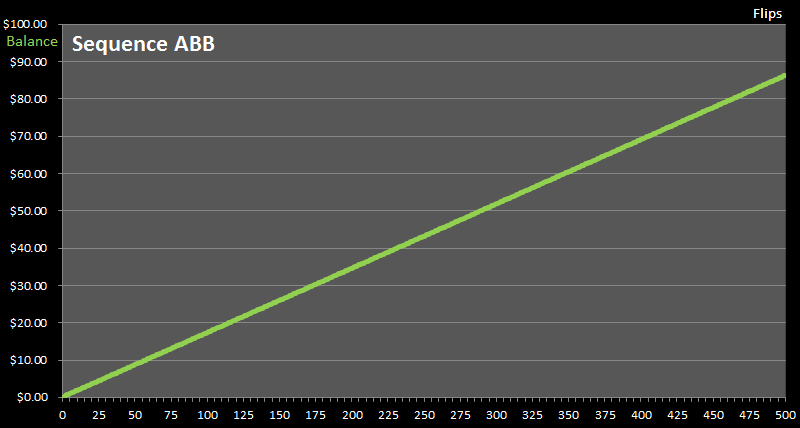 However, what if I told you that if you alternate playing these two games using the pattern: A, B, B, A, B, B, A, B, B, … that the odds will switch to being in your favor ?!?!