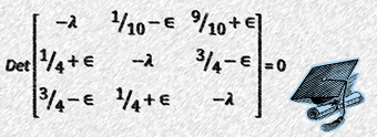 We can read these probabilities off the chart, but mathematically, there is another way to determine the answer. We can determine the answer by calculating the Eigenvectors for this matrix (I think I’ve probably lost a good number of people in this post already, so if you’re still reading this, I assume you’re familiar with Eigenvectors). |