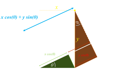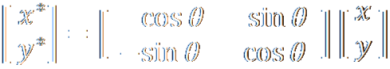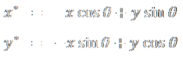 | To complete the rotation we need to write the RGB value for each pixel in the new location. The (x,y) coordinates relative to the axes are the same; what we have done is rotate the coordinate frame of reference by an angle θ. |  |