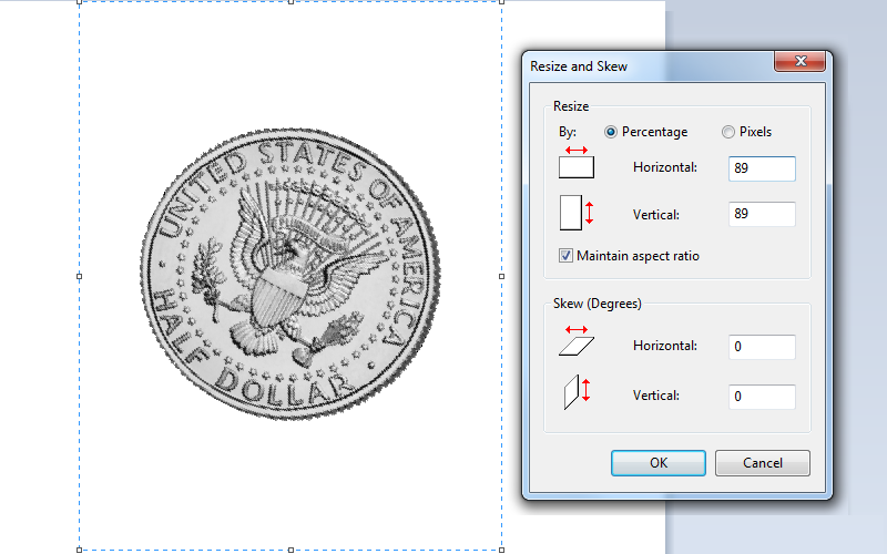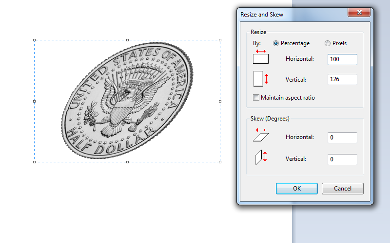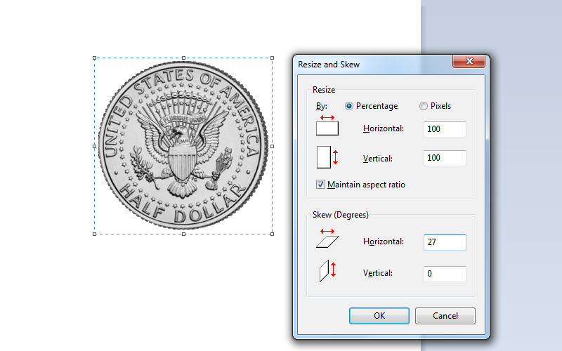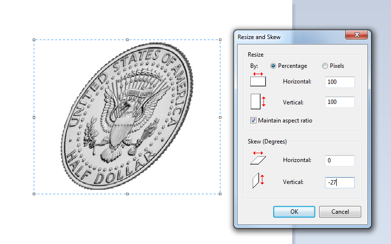|  | I'm using a coin, on purpose, because it is circular and you can see the effects of the shears. We can also see, at the end, if there is any distortion. I obtained my image from Wikimedia Commons, just incase you want to play along at home and repeat these steps. |