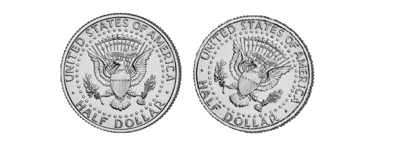 I'm going to show you how you can rotate the image of the half-dollar coin below by 27°