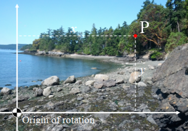 Each pixel has a coordinate pair (x,y) describing its position on two orthogonal axes from defined origin O. It is around this origin we’re going to rotate our image.