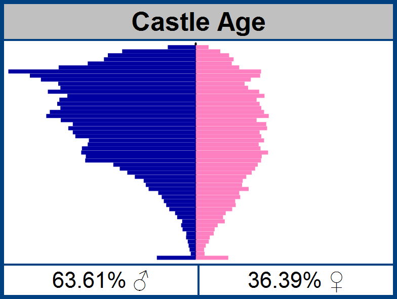 As expected, some games do skew more male biased. Texas Hold’em Poker for instance. It’s not a great shock to find that this application is 67% male biased. Maybe a little more surprising, though not a hugely astonishing is Castle Age, which is 64% male.