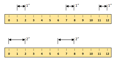 However, a standard ruler is grossly inefficient. For example, the distance of length 1” can be measured multiple ways on this ruler. The distance between any two adjacent marks on the ruler is 1”, so this distance can be measured twelve redundant ways. Similarly, there are multiple ways to measure a distance of 2”, and 3” … … Is it possible to make a more efficient ruler? |