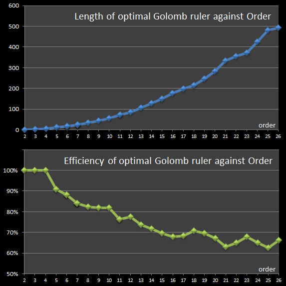 Finally, a Golomb ruler is described as optimal if no shorter ruler of the same order exists.