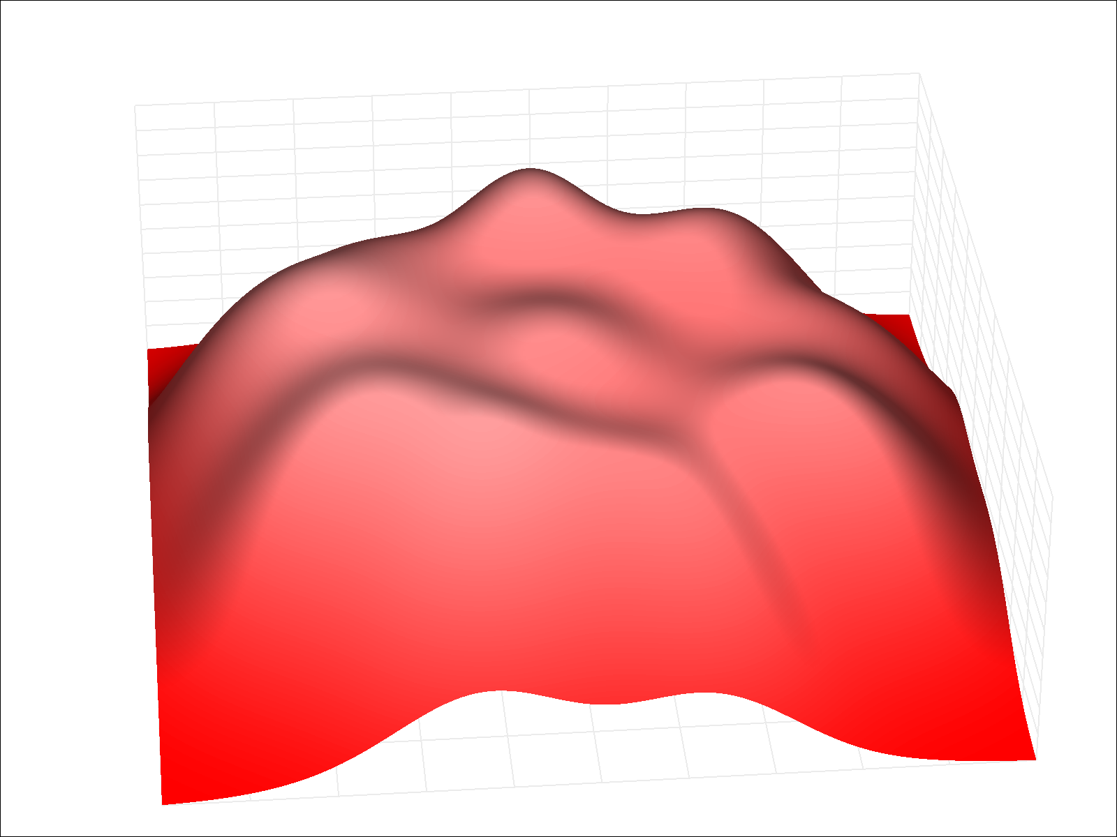 Geeking out, here are some plots of the probability functions in 3D. Click on each image to view it in full resolution.