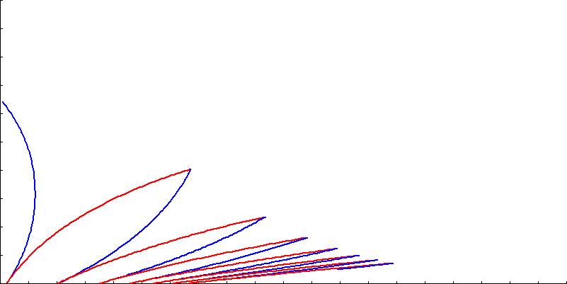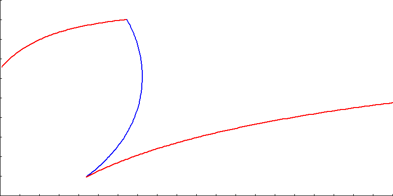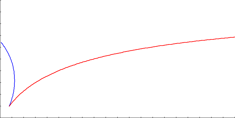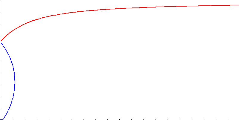 If the starting conditions are not the special straight line solution, as we know that the ± components and our thought experiment, shows we have two solution paths. We know one solution moves us closer to the column and one further away. (Another exercise for eager students is to show that, for the positive sign root, the value for Y monotonically increases (bounded at 1.0), and for the negative sign root monotonically it decreases).