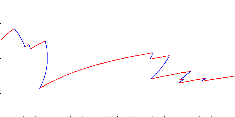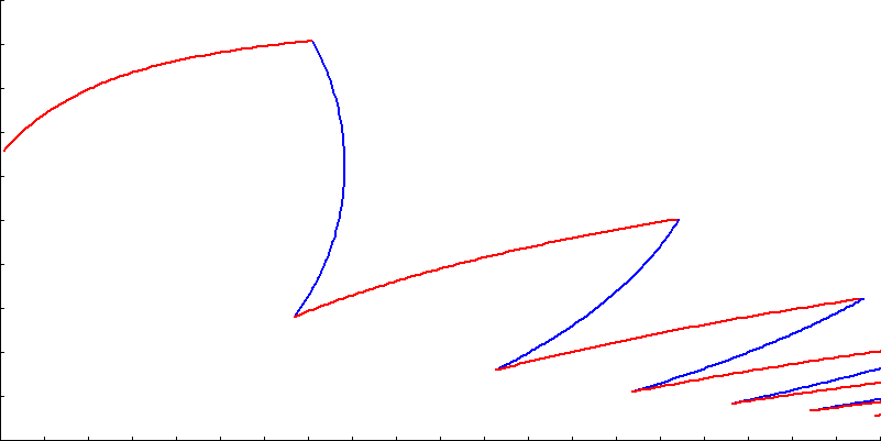Here is what happens if, starting from the same starting position of Y = 0.65, we switch between the two strategies of moving towards and away from the column (at regular intervals). In the first plot, we initially run away from the column …