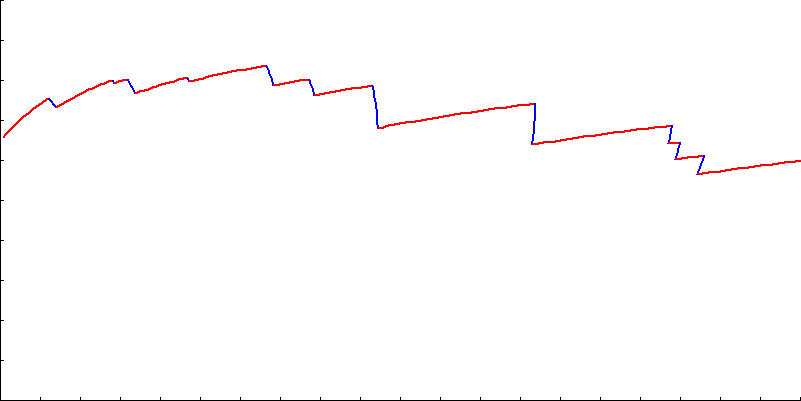 Below is a chart of both paths, starting a Y = 0.65, and sticking the chosen strategy. The red path asymptotes to 1.0, and the blue path reaches the column.