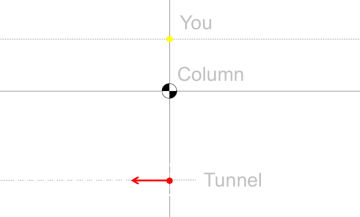 We'll define the perpendicular distance from the column to the tunnel mouth as b