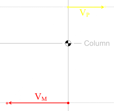 The train is traveling from East to West at a constant speed of VM. If you stay still, as the train moves, the column will no longer hide you. Your location will be compromised, and you will be shot. So, you need to move too. If you move correctly, you can keep the column between you and the monster. You also move at a constant speed, and we'll call this speed VP. The train is moving from right to left, so you need to move from left to right.