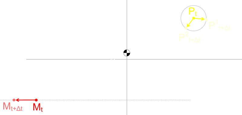 To remain hidden, we need to ensure we move to a location that is on the projected straight line that passes through the monster position and the column. As we can see, there are two possible solutions: P1 and P2