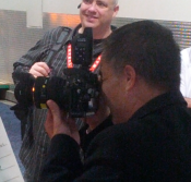 A picture of someone using a very expensive 21 mega-pixel camera (taken with cheap, noisey smartphone camera, zoomed, cropped then reduced to just 175x167 pixels. There should probably be a law against doing this).