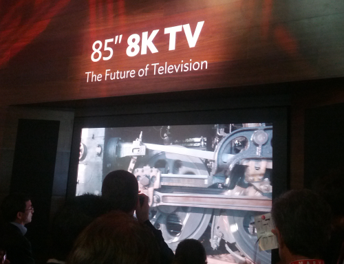 Not content with showing just Ultra HD Televisions (4k), Sharp showed an 85" display running an 8k picture (they quoted 7,680x4,320 pixels with 10 bits of color depth for each RGB channel).