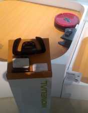 This little device was just a few inches long, and hosted knurled wheels. The idea is to put it on your naked back, turn it on and let it roam around (using its sensors to stop if falling off the edge). As it moves, the wheels would give you a gentle massage. I didn't try it …