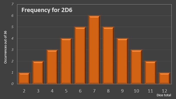 If we roll two dice and add their scores together, the total score follows the distribution pattern below. |