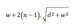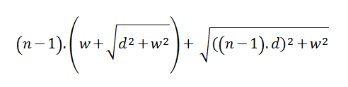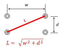 Using some high-school geometry, and a little Pythagoras, it痴 possible to work out the lengths of the intermediate segments of shoe lace. For instance, on the right we see the length of a simple cross-over diagonal. |