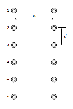 We'll use the letter d to describe the distance separating each row of eyelets, and the letter w for the distance between the eyelets on each side when the shoe is pulled tight. (I知 assuming, for this analysis, that the rows are parallel and equidistant). |