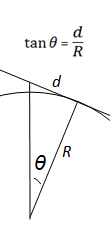 We know the circumferance of the Earth, it's 2πR If we know the subtended angle, we can determine what ratio this represents of a full circle, and thus what ratio of the circumference this represents. This will give us the distance along the ground betweeen the two points. Using the values of d=384.3 Km and R=6,371 Km, and using the tan-1 button on our calculator we can calculate the subtended angle. It's 3.452° (3.452/360) x (2 x π x 6371) = 383.8 Km For a plane at high altitude, the difference between the straight line distance to the horizon and the curved distance on the Earth is about 500 m. (The difference when dealing with our first example of a man of height 1.8 m is a fraction of a millimeter). |
