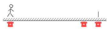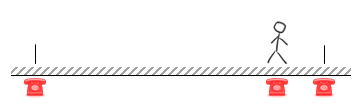 The optimal strategy, in fact, is to stand in the median position, and since there are just three phones this time, this necessitates standing in front of the middle phone. |