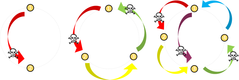 2 ingredients ** Start ** Skip: #1 Push: #2 ** Finished ** Survivor: #1 | 3 ingredients ** Start ** Skip: #1 Push: #2 Skip: #3 Push: #1 ** Finished ** Survivor: #3 | 4 ingredients ** Start ** Skip: #1 Push: #2 Skip: #3 Push: #4 Skip: #1 Push: #3 ** Finished ** Survivor: #1 |
