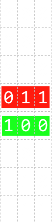 Systems based on binary are simple and easy to build. As mentioned above, computers use combinations of logic gates where the presence, or not, of a voltage indicates state of any bit. Binary signals are unambiguous; a value is either set, or it is not. There is no concept of 'half-set'. This immunity to noise is a great advantage. However, whilst there is no ambiguity with regards to what any individual bit can be set at (it has to be quantized to one of two values), there is the potential (when there is more than one bit in parallel) that not all bits change state at exactly the same time. As an example, look at the binary sequence to the left, which shows the binary representations of the decimal numbers 0-7. In red, we see the number 3 represented as 0112. As it changes to 4, every bit changes state, to 1002 (The subscript 2 being used to signify the number base to avoid confusion with decimal). Every value changes from either 1 to 0, or 0 to 1. If all of these bits changed instantaneously, and synchronously, from one state to the other, there would never be any problem, but outside of theory, that never happens! In the real world, some bits would flip before others. Since every bit is changing in this example, depending on the order they change, and depending on when you read their state, it might be possible to read any value from this collection of bits!! This kind of problem is called skew. Microprocessors solve this problem by have a clock. A clock is like a metronome and beats with regular cadence. Bits are allowed to change state, taking their own time as they do, but are only read when the clock next beats. The clock frequency is chosen so that each bit has had sufficient time to change state, settle, and then be read in a repeatable and consistent way. |