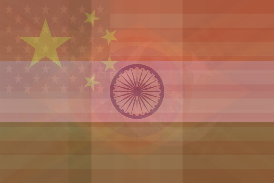 Another interpretation is that a country is defined by its land, not its population. Here is the result of merging the flags with colors proportion to their land areas: